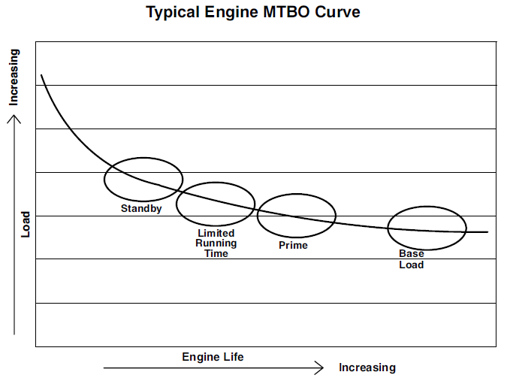 그림을 보시면 부하 용량을 높게 사용할수록 수명이 짧아지고 용량이 낮아지면 수명이 길어지는 것을 볼 수 있습니다. 그렇습니다. 발전기의 용량에 사용되는 용어들은 발전기를 어떻게 사용할 것인가에 대한 이야기임을 알 수 있습니다.