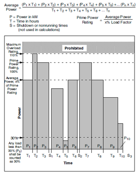Unlimited Prime Rating은 운전 시간의 제한은 없습니다. 그러나 운전 용량은 Prime Rating의 평균 70% ( 250시간마다)로 제한되며 10%의 과부하 조건은 25시간으로 제한됩니다.