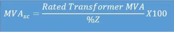 변압기의 임피던스가 고장전류를 제한합니다. 임피던스의 백분율이 높을수록 고장전류의 크기가 낮게 될 것입니다. 시스템의 고장전류는 다음과 같은 수학식으로 나타낼 수 있습니다.