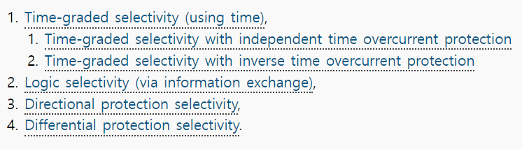 전기 네트워크 보호에서 적절한 선택성을 보장하는 다양한 방법이 있습니다: