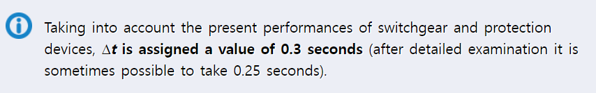 SWGR와 보호 장치의 현재의 성능을 고려하여 Δt는 0.3초로 설정됩니다. (상세한 검증 후엔 이 시간은 0.25초로 설정할 수도 있습니다.)