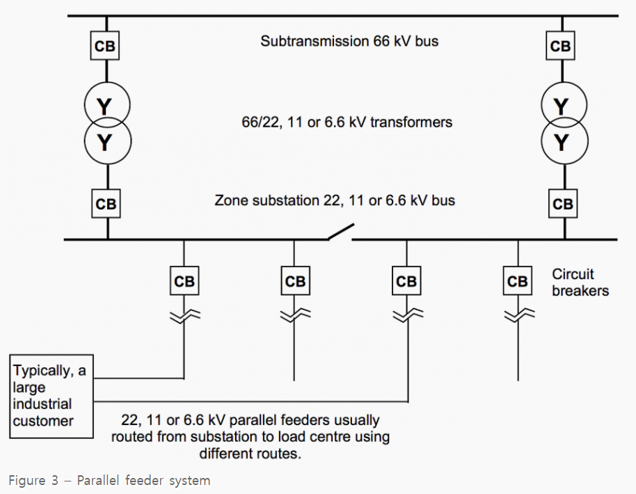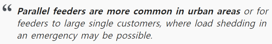 병렬 피더는 비상시에 Load shedding이 발생할 수 있는 도시 지역이나 대형 단독 수용가에서 더 일반적입니다.