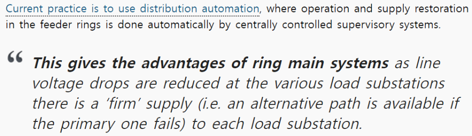 최근에는 자동 배전 시스템을 사용하는데 이는 피더 링에서의 운전과 공급 복구를 중앙에서 제어하는 감시 시스템에 의해서 자동으로 수행하는 것입니다.