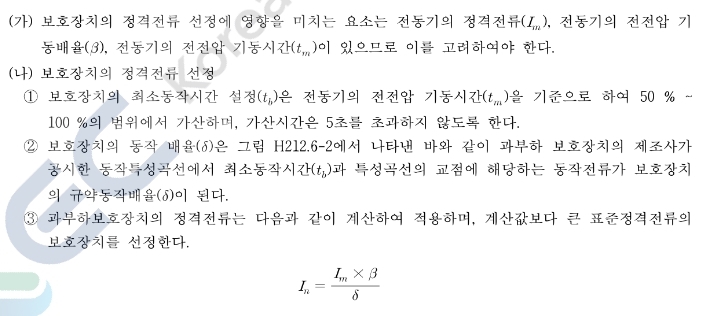 1) 전동기 과부하 보호 장치의 선정 기준에 따른 정격 전류 선정 ( In = Im x β / δ )