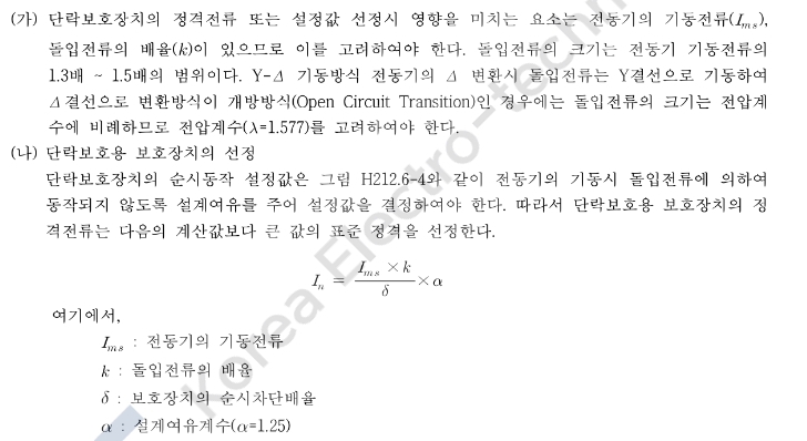 2. 전동기 회로의 단락 보호 차단기의 선정 방법