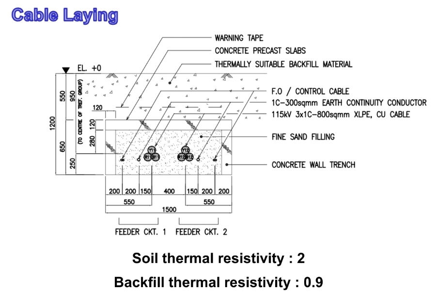 이번 포스팅의 결론은 트렌치 공사 방법에서 트랜치 내의 Backfill 모래의 열저항 값을 체크하여 그 열저항 값을 실제의 케이블 허용 전류 계산에 반영하자는 것입니다. 중동과 같이 열저항 값을 높게 적용해야 하는 지역에서는 트랜치 백필 모래의 열저항 값을 낮게 적용하면 전체 토양의 열저항 값을 줄일 수 있다는 것을 이해하는 것이 중요합니다.