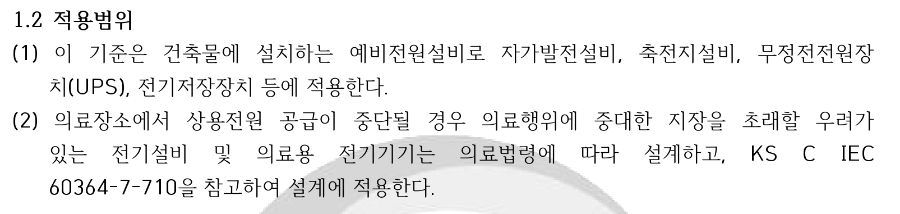 여기서 보면 적용 범위가 건축물로 한정되어 있습니다. 따라서 계산하고자 하는 발전기가 건축물 한정으로 사용된다면 이 기준을 따르는 것이 맞습니다. 그런데 건축물이 아닌 플랜트에 적용한다면 적용하지 않아도 되는 것으로 보입니다. 병원, 상가, 아파트, 빌딩 등은 모두 건축물에 해당한다고 보아야 하겠죠. 근데 공장이나 발전소 등의 건축물에 해당되지 않는다고 보여집니다.