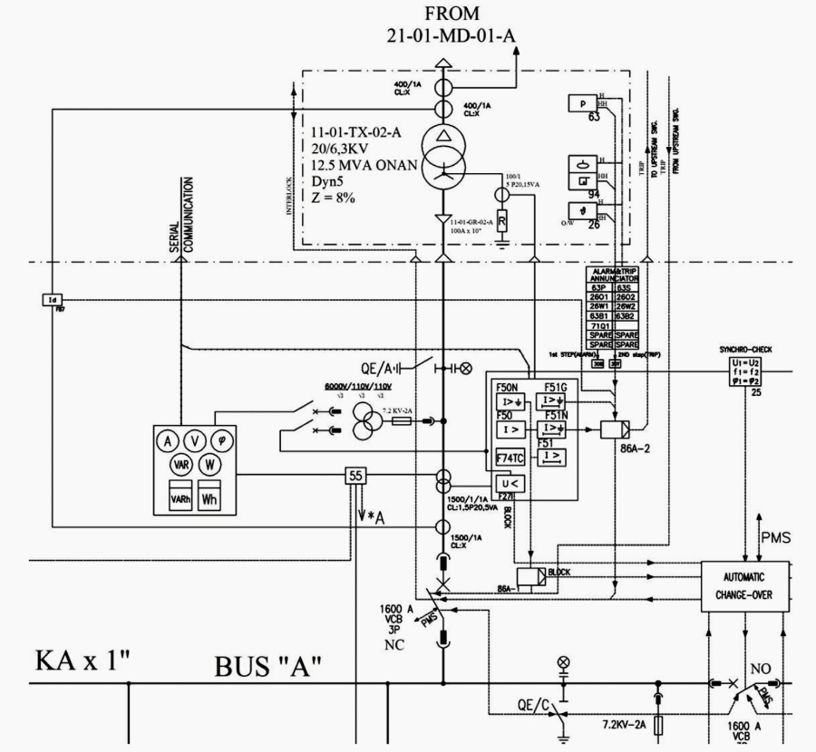 또한 고압 배전반의 인입 피더에 대해서 출력 피더에 트립 명령을 주기 위한 목적으로 27 (저전압 계전기) 가 필요할 수 있습니다.