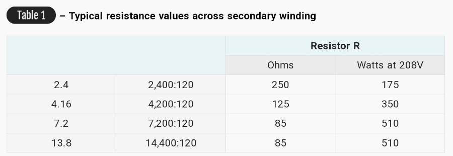 보통 1차 VLN : 69.3V의 전압비가 사용되는데 그래서 계전기의 최대 지락 전압은 2 x 69.3 = 208 V가 됩니다. 계전기는 경보를 울리는데 사용되기 때문에 계전기의 연속 전압 정격은 이 값보다 크거나 같아야 합니다. 그렇지 않으면 보조 감압 변압기가 사용되어야 합니다.