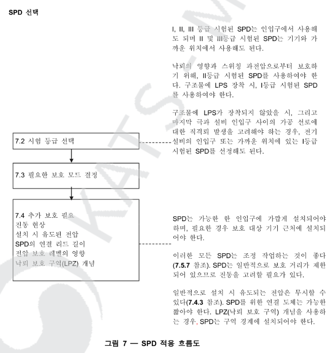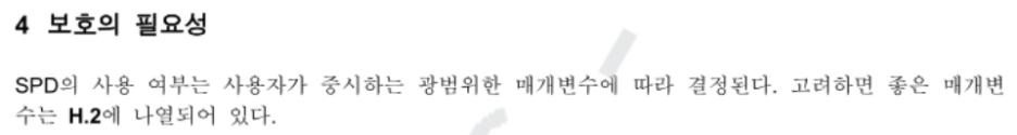 표준의 4항에 보호의 필요성에 대한 설명이 있습니다. SPD의 사용 여부는 사용자가 중시하는 광범위한 매개변수에 따라 결정된다고 하었습니다. 즉 절대적인 기준이 없다고 보면 됩니다. 다만 표준이나 규정에서 특별히 지정하여 설치하라고 한 경우에는 예외가 됩니다.