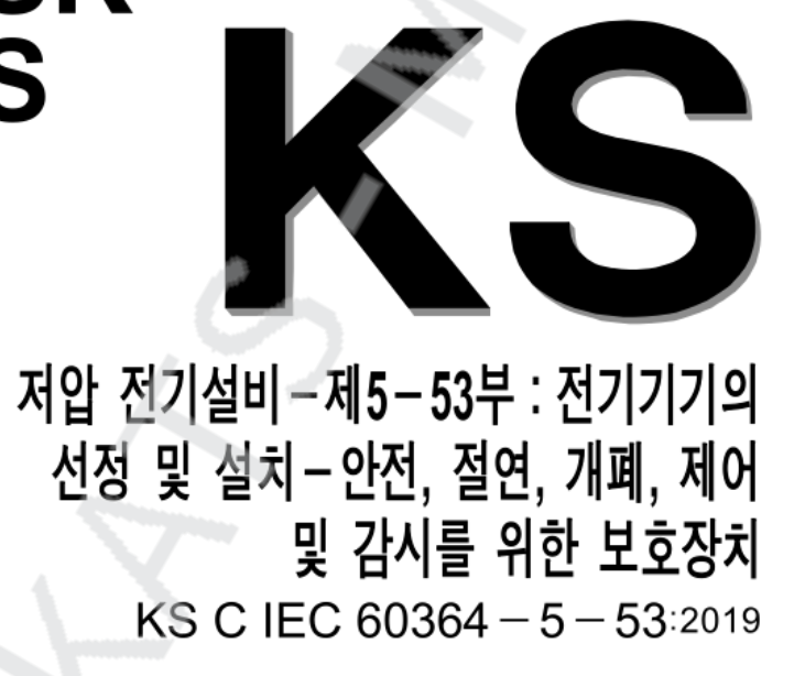 2) KS C IEC 60364-5-53 (건축 전기 설비 - 제5-53부 전기기기의 선정 및 시공 - 절연 개폐 및 제어)에 따르도록 하고 있습니다.
