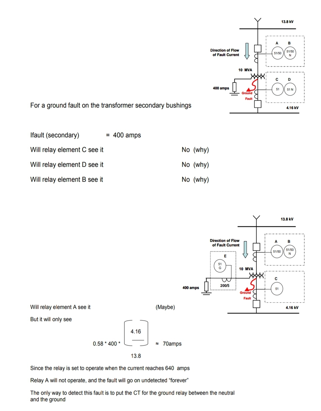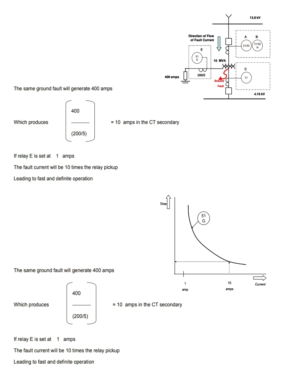 변압기 보호를 위해서 고려해야 할 또 다른 요소는 그림 10-2에서 보여지는 Delta-Delta, Delta-Why 결선 변압기에 대한 2차 측 외부 고장의 영향입니다.