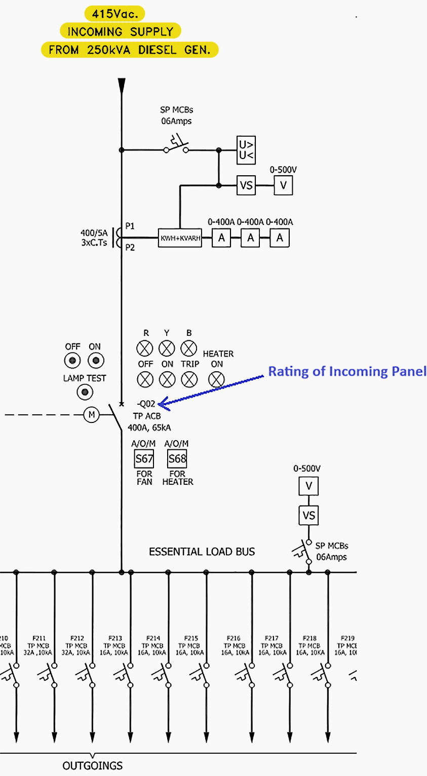 Figure 5 – The Single Line Diagram of the Diesel Generator Incoming Panel