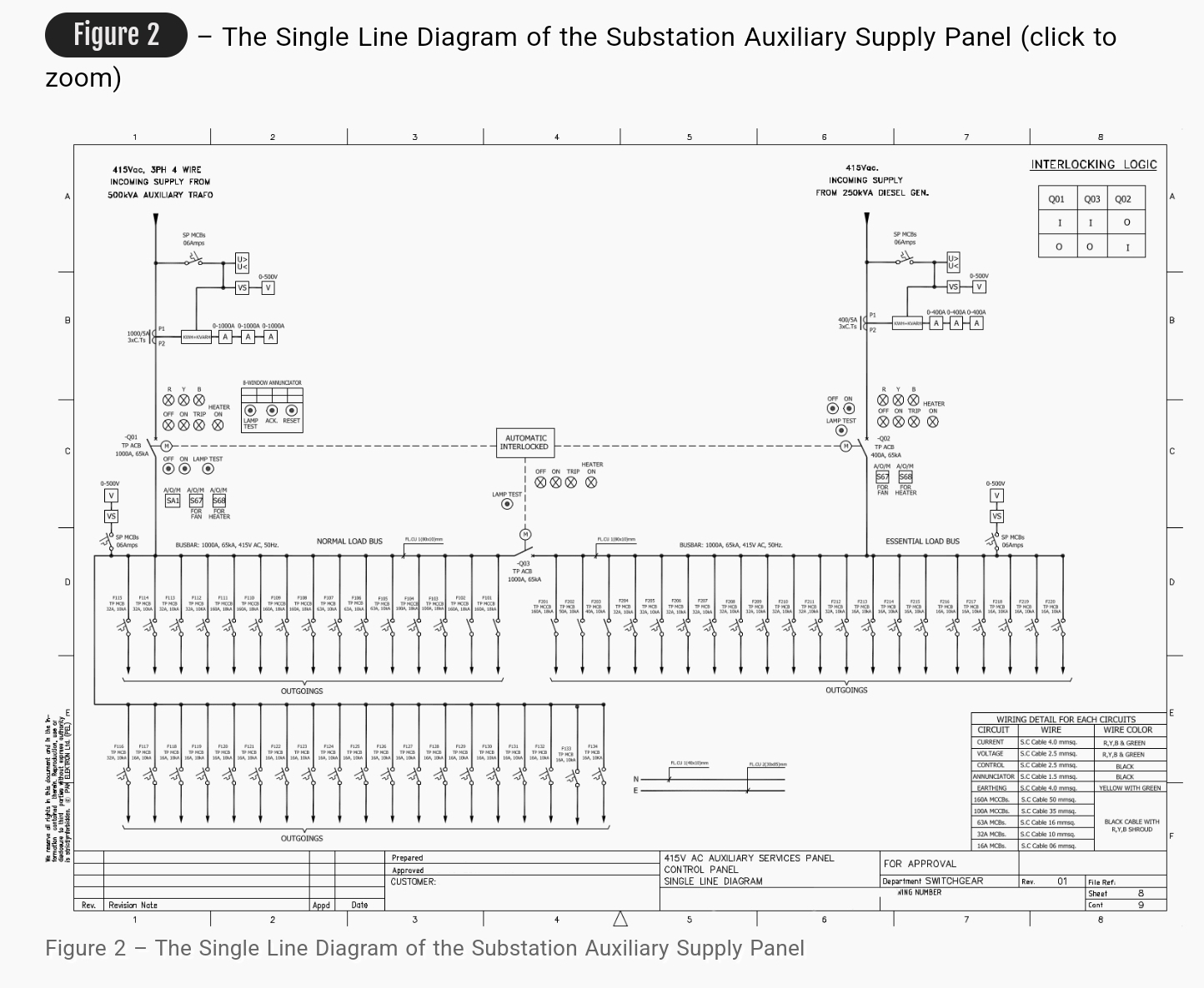 Figure 2 – The Single Line Diagram of the Substation Auxiliary Supply Panel (click to zoom)