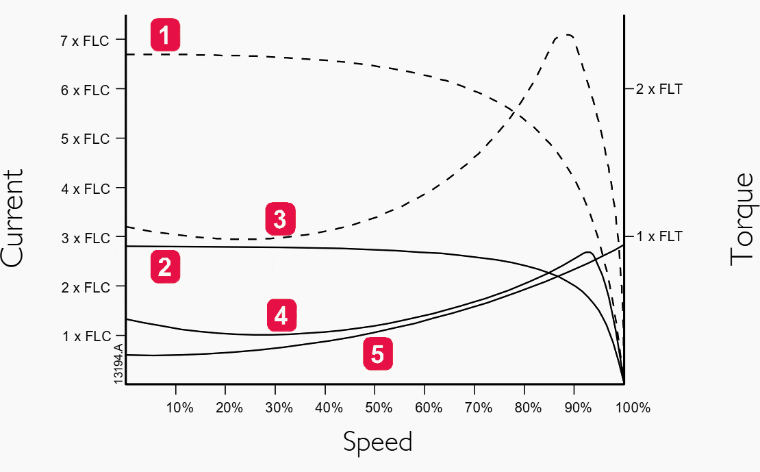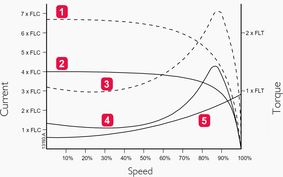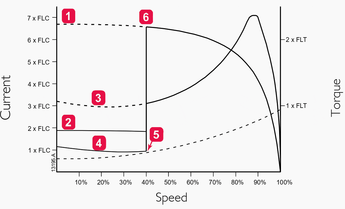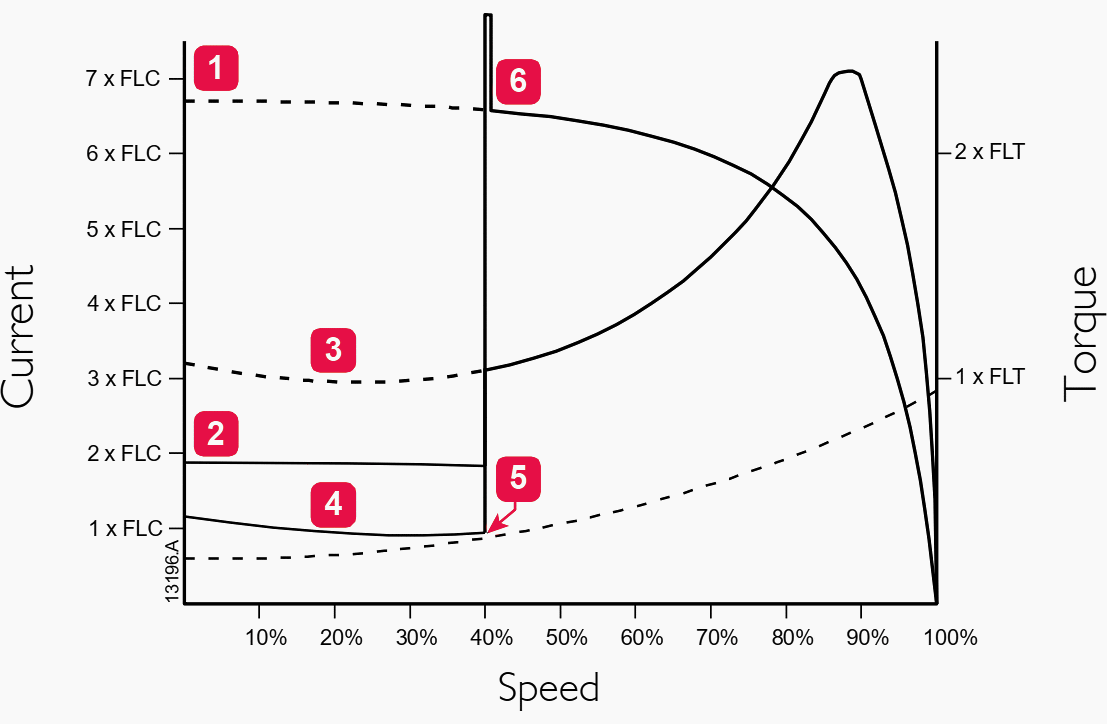 Figure 13 – Start performance characteristics of a star/delta motor starter