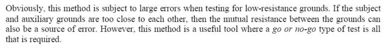 아래의 IEEE 81-2012, 8.2.2.1의 2전극법에 대한 설명에서 이 방법이 저저항 접지를 측정할 경우 오차가 많다고 설명하고 있습니다. 그래서 이 방법은 제한적으로 사용되어야 합니다. 공장에서 간편하다는 이유로 2전극법으로 측정하는 경우가 많은데 이는 접지 저항을 바르게 관리하고 있다고 할 수 없습니다.