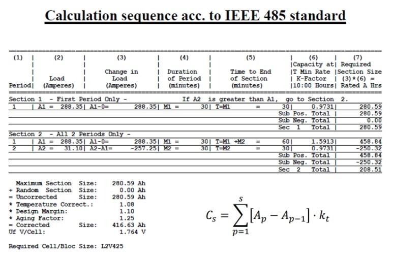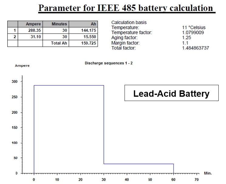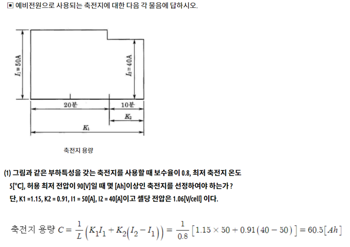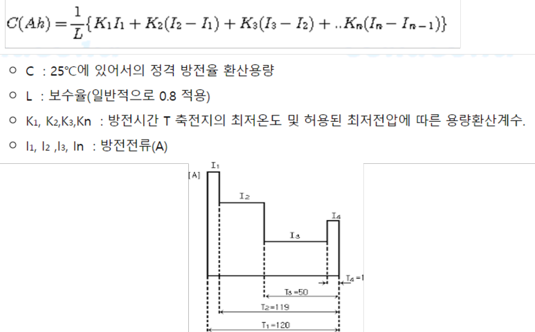 BATTERY 용량 계산에 대한 자세한 설명은 축전지 설비 포스팅을 참조하셔도 됩니다. LEAD ACID BATTERY와 Ni-Cd BTATTERY에 대한 각각의 IEEE 표준을 참조하시면 좋습니다.