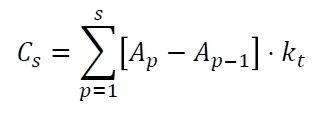아래 식은 IEEE 485에 있는 수식인데 위의 수식에서 AGING FACTOR (보수율)을 적용하지 않은 수식과 동일합니다. 여기서 용량환산계수 kt를 구하는 방법에 대해서 검토하고 넘어가겠습니다.
