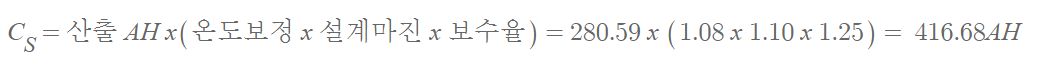 시험 문제에서는 간단하게 보수율만 고려했지만 실제의 계산에서는 설치 지역의 온도에 대한 고려, 부하가 증가할 것을 고려한 설계 마진을 추가했습니다. 이 내용도 중요한 사항이므로 설계하시는 분들은 참조 바랍니다.