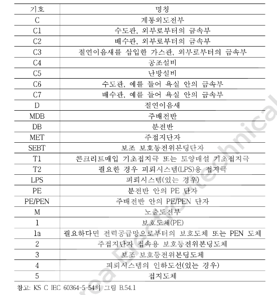 6) 일반 주 등전위 본딩 도체 (General Main Equipotential Link Conductor) (KEC - 주접지단자 접속용 보호등전위본딩 도체)