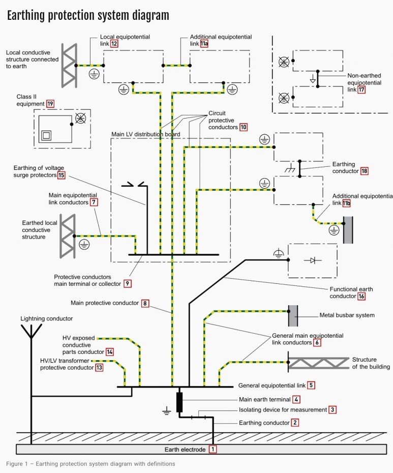 이미 알고 있듯이, 보호 도체(Protective conductor)는 모든 접지 보호 시스템의 주요 부분이지만, 정보 기술, 전압 서지 보호, 근거리 네트워크 등의 요구 사항에 따라 시스템의 복잡성이 증가하고 용어가 다소 혼동될 위험이 있습니다.