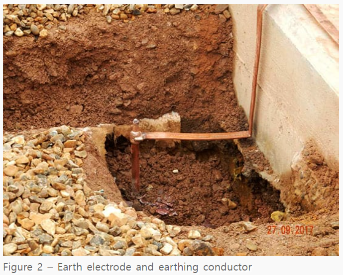 접지봉과의 연결을 제공하는 도체. 일반적으로 절연되지 않고 25mmsq (구리), 50mmsq (아연도금 철제)의 굵기를 가집니다. 위의 그림1을 참조 바랍니다.