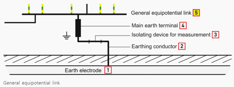 5) 일반 등전위 링크 (General Equipotential Link) (KEC - MET 주접지단자로 표시되며 4번과 5번을 통합한 개념임)