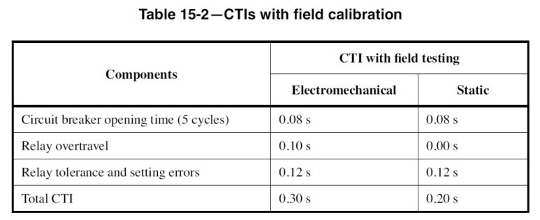 IEEE 242 에서는 CTI (Certain Time Interval)이라고 정의를 하는데 그 시간을 아래와 같이 정의했습니다. 요즘 사용하는 디지털 계전기는 표시가 없지만 Static에 준해서 0.2s 즉 200ms라고 이해하시면 됩니다.