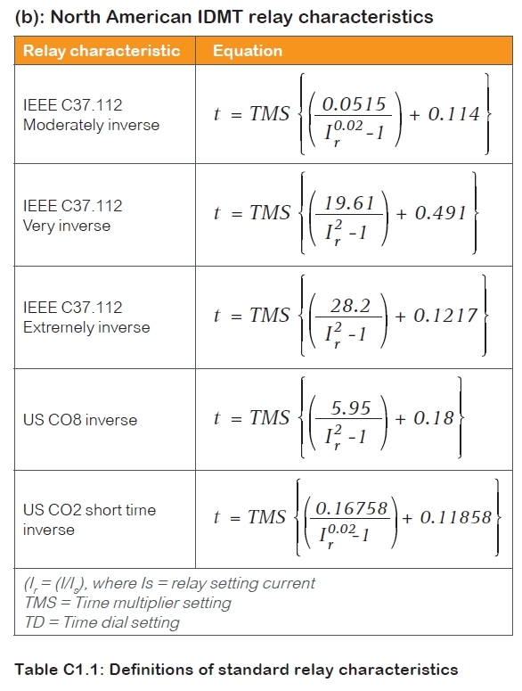 미국의 규격에 따른 IDMT는 다음과 같은 종류가 있습니다. 마찬가지로 수식과 커브도 보여주고 있습니다.