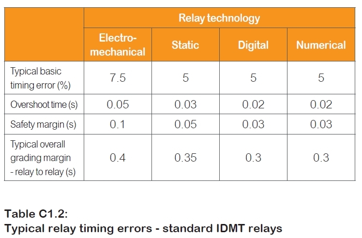 Schneider의 자료에는 Grading Margin으로 표현되어 있는데 다음과 같은 기준을 제시하고 있습니다. 이 자료는 좀더 긴 Time Interval을 요구하고 있습니다. 디지털 계전기에서 300ms의 간격을 요구합니다. 시간 간격이 넓으면 좋겠지만 여러 단계로 구성된 시스템에서는 문제가 심각해집니다. 그래서 최소한의 값을 찾게 되는데 IEEE의 기준이 좋다고 개인적으로 생각합니다.