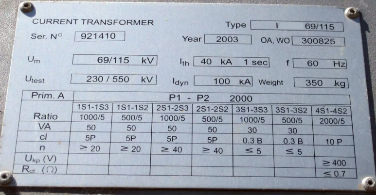 CT의 명판 (Nameplate)
