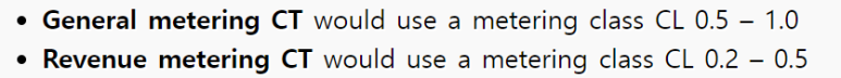 계기용 CT는 미터링 클래스 CT를 사용합니다. 클래스가 높을수록 (숫자는 낮은 것) 1차와 2차 전류 사이의 정밀도가 높습니다.
