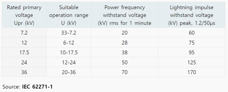 1차 회로 전압 정격은 CT에서 제공하는 절연 레벨을 나타냅니다. 케이블 또는 부싱 주위에 링 타입 CT가 설치되어 있는 경우 절연 레벨은 케이블 또는 부싱에서 제공할 수 있습니다.