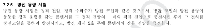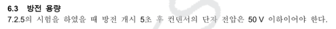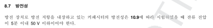 규정 : KS C 4802 고압 및 특별고압 전력 커패시터 - 방전 5분 이내 50V 이하