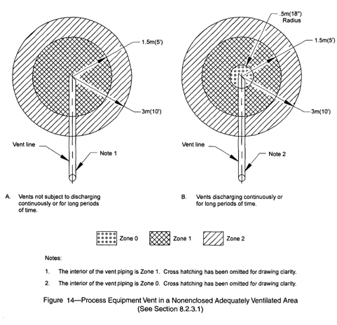폭발성 가스를 배출하는 VENT 주변은 위의 그림과 같이 ZONE0, 1, 2 등의 3가지 ZONE이 공존합니다.