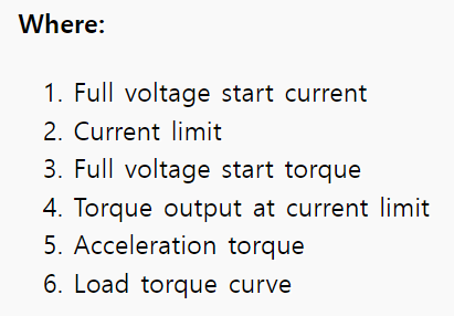 기동전류가 모든 조건하에서 전동기를 정격 속도로 가속하는데 충분하게 높아야 하는 것은 중요한 부분입니다. 만약 토크가 기동 시간 동안 한순간이라도 가속을 시키는데 불충분하면 전동기는 감소된 속도에서 계속 돌게 될 것입니다. 이것은 기동시간 초과 보호 기능이 없으면 전동기를 과열 시키게 됩니다.