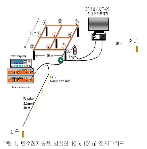 아래 그림과 같은 실험 접지 계를 만들어서 실험을 했습니다.