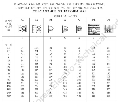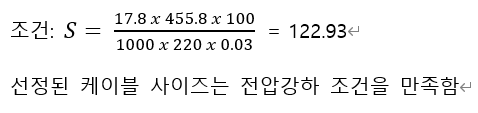 위의 4가지 조건을 만족하는 가장 큰 사이즈의 케이블을 선정한다.