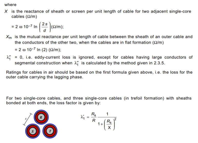 IEC 60287-1-1 과 1-3 에 보면 Circulation current를 구하기 위해서 직접 전류를 계산하기보다는 Loss factor를 이용하는 방법을 사용하고 있습니다. 이 Loss Factor는 다음과 같이 계산됩니다.