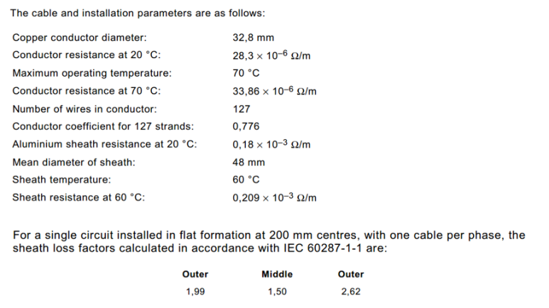 IEC 60287-1-3 에는 다음과 같은 샘플 계산이 있습니다. 위의 수식을 가지고 계산해서 IEC60287-1-1에서 준 값과 비교해 보면 계산이 정확한지 알 수 있습니다.