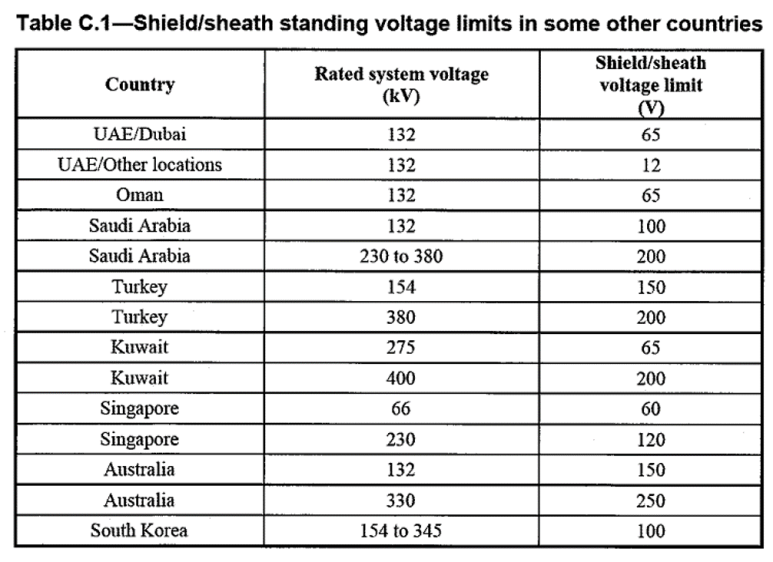 IEEE 575에는 각 국가별로 허용하는 유기전압을 보여주고 있습니다. 나라별로 많이 다름을 알 수 있습니다.
