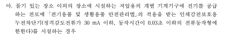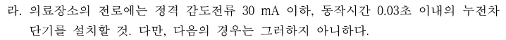 (1) 일반적인 장소 : 감도 전류 30 mA, 동작시간 0.03 sec
