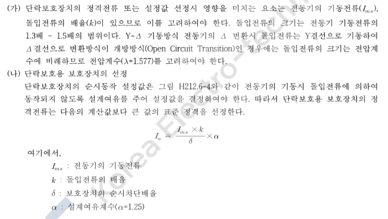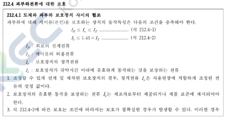 KEC의 과전류보호 장치와 관련된 수식을 어떻게 적용할 것인가 하는 부분이었습니다.