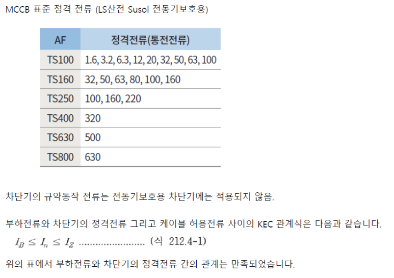| KEC 적용 전동기용 MCCB (Susol TM Type) 및 케이블 선정표 (0) | 2023.11.11 |