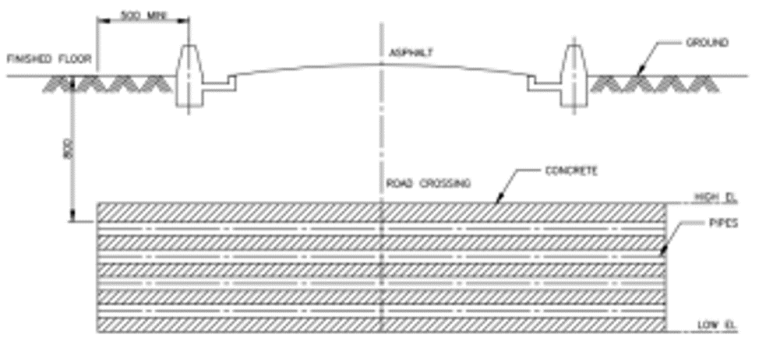 - 도로를 넘어가는 덕트 뱅크의 시설 방법