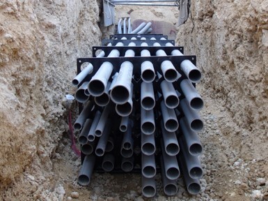 덕트 뱅크는 전선을 보호하고 루트를 제공하기 위해 다수의 전선관을 모아둔 것을 의미합니다. 콘크리트로 보강된 이 전선관들은 향후에 땅을 파지 않고 전선을 제거하거나 교체할 수 있도록 해 줍니다.