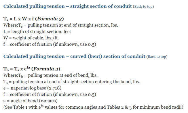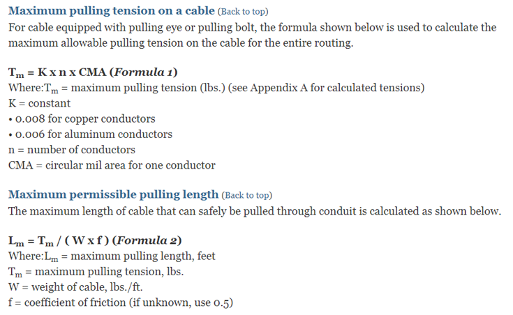 케이블을 포설할 때 전선관 내에 많은 저항이 발생하고 케이블 자체에 스트레스가 발생하게 됩니다. 이 Pulling Tension 계산은 케이블이 손상되지 않고 끌 수 있는 최대의 힘이 얼마인지 계산하는 것입니다.