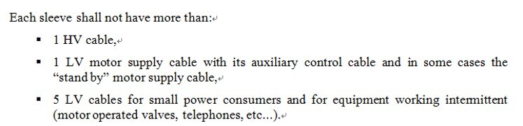 "공장 레이아웃을 설계하는 초기에 타 부문과의 협의하에 케이블 포설을 위한 지하나 지상의 공간을 확보하는 것이 매우 중요합니다. 수치가 포함된 전선로 계획이 준비되어야 합니다.(7.4.2.6)"