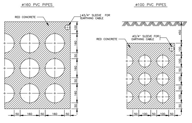- 비외장 케이블(NON-ARMOURED) 사용 - 전선관과 콘크리트로 보호됨