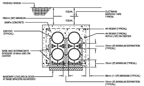 아래의 그림에서 보면 덕트 뱅크를 구성하는 몇 가지 요소를 볼 수 있습니다.